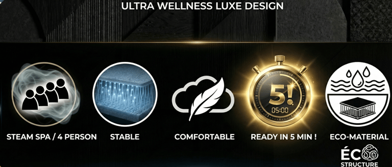 C'est un espace de détente combinant vapeur chaude et jets d'eau pour 4 personnes.